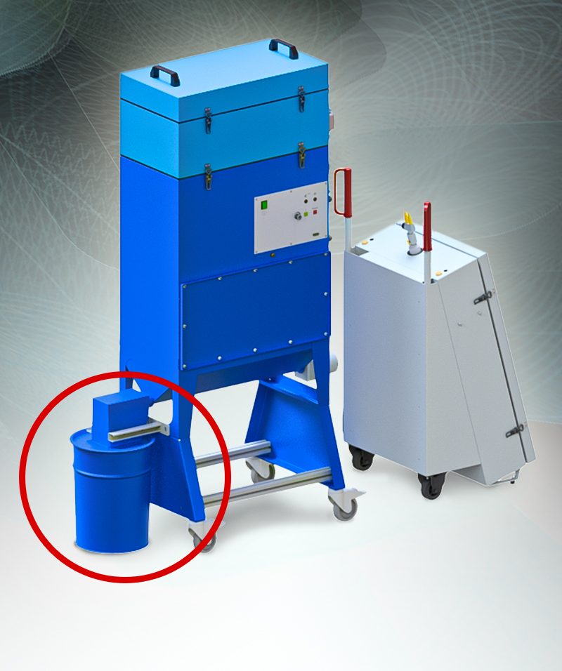 - Dauerhafter Austrag über eine Schleuse in ein 20 ltr. Fass durch die optimale Position zum TKFVA, auch im Betrieb