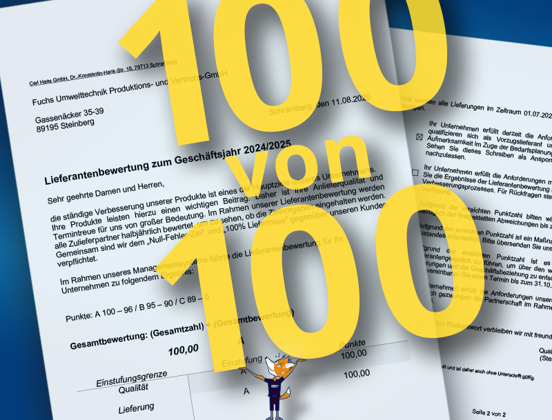 Wieder eine Top-Bewertung: 100 von 100 Punkten für Fuchs Umwelttechnik
