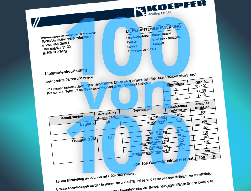 Wieder eine Top-Bewertung: 100 von 100 Punkten für Fuchs Umwelttechnik
